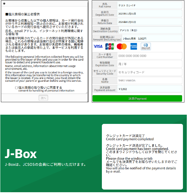 J-Boxから渡航者への案内メールおよびクレジットカード決済画面に英語表記を追加します。